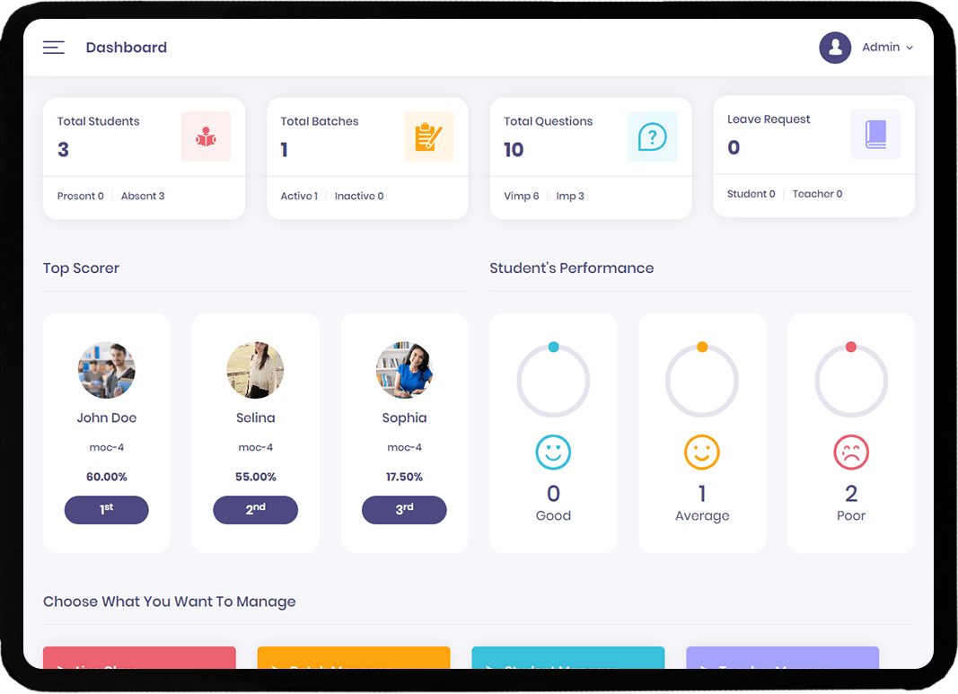 Helps in assessment with the student, parent and teacher portals: